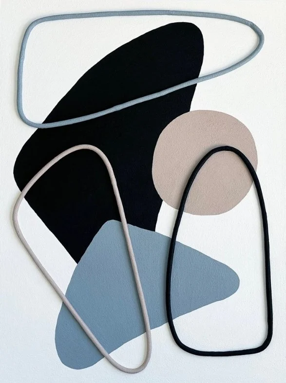 Monochromatic minis make dynamic compositions when grouped, while large scale sculptural paintings make a bold statement on their own or when paired.